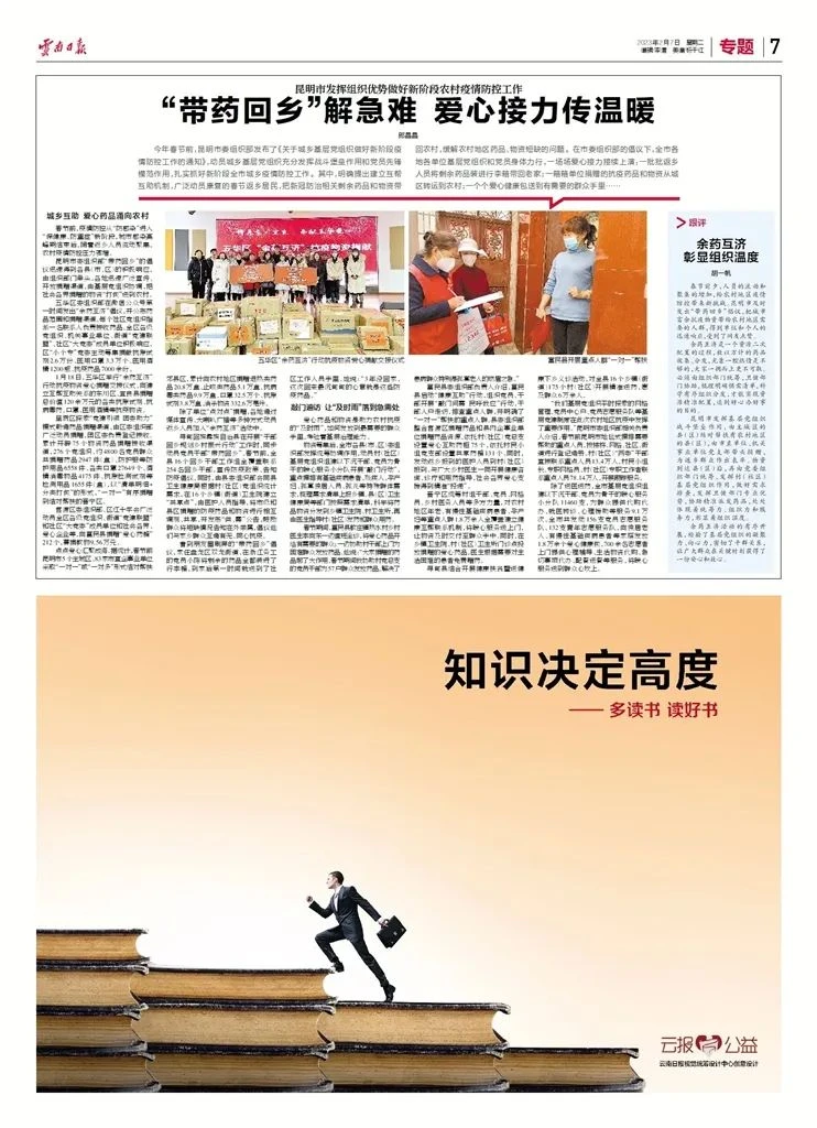 今年春节前,昆明市委组织部发布了《关于城乡基层党组织做好新阶段疫情防控工作的通知》,动员城乡基层党组织充分发挥战斗堡垒作用和党员先锋模范作用,扎实抓好新阶段全市城乡疫情防控工作。其中,明确提出建立互帮互助机制,广泛动员康复的春节返乡居民,把新冠防治相关剩余药品和物资带回农村,缓解农村地区药品、物资短缺的问题。在市委组织部的倡议下,全市各地各单位基层党组织和党员身体力行,一场场爱心接力接续上演:一批批返乡人员将剩余药品装进行李箱带回老家;一箱箱单位捐赠的抗疫药品和物资从城区转运到农村;一个个爱心健康包送到有需要的群众手里……