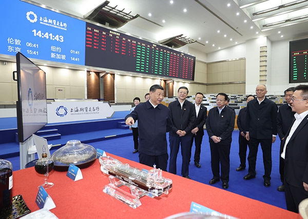 28日下午,习近平一下列车就前往上海期货交易所考察。他结合电子屏幕和重要上市品种交割品展示,听取交易所增强全球资源配置能力、服务实体经济和国家战略等情况介绍,了解交易所日常资金管理和交割结算等事项。习近平强调,上海建设国际金融中心目标正确、步伐稳健、前景光明,上海期货交易所要加快建成世界一流交易所,为探索中国特色期货监管制度和业务模式、建设国际金融中心作出更大贡献。