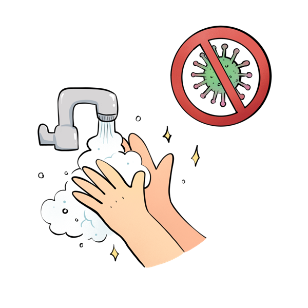 勤洗手,讲礼仪,咳嗽或打喷嚏时用纸巾、毛巾等遮住口鼻,尽量避免触摸眼睛、鼻或口。