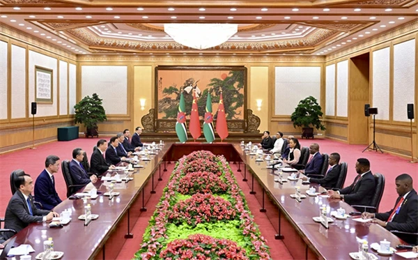 3月25日下午,国家主席习近平在人民大会堂会见来华进行正式访问的多米尼克总理斯凯里特。