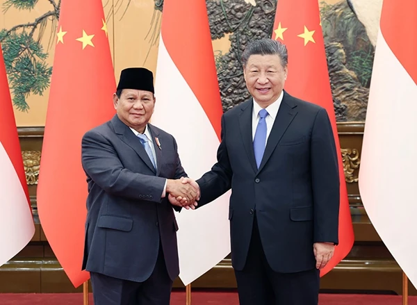 4月1日下午,国家主席习近平在北京人民大会堂同印尼当选总统普拉博沃举行会谈。
