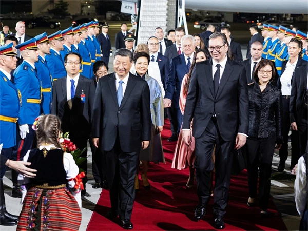 当地时间5月7日晚,国家主席习近平乘专机抵达贝尔格莱德,应塞尔维亚总统武契奇邀请,对塞尔维亚进行国事访问。