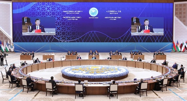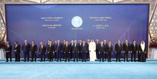 当地时间7月4日下午,国家主席习近平在阿斯塔纳出席“上海合作组织+”阿斯塔纳峰会并发表题为《携手构建更加美好的上海合作组织家园》的重要讲话。