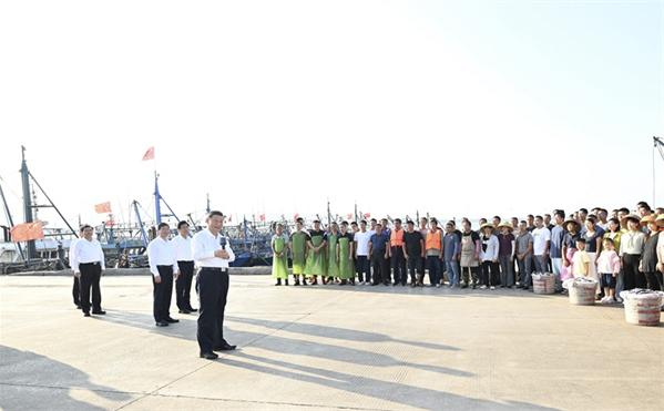 10月15日至16日,中共中央总书记、国家主席、中央军委主席习近平在福建考察。这是15日下午,习近平在漳州市东山县陈城镇澳角村考察时,同渔民们亲切交流。新华社记者 谢环驰 摄