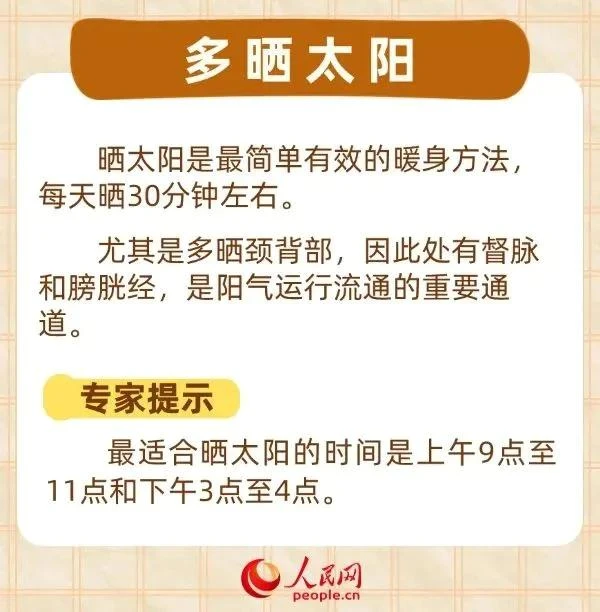 一降温就手脚冰凉,尤其是女性,就算穿厚鞋袜、盖厚被子也捂不暖。这可能不单单是因为天气寒冷或是保暖不够,这与体内阳气不足、不能温煦身体,或者气机郁滞、阳气不能够顺畅通达四肢末端有关。对于这种情况,推荐做好以下6点,有助于在冬日畅通阳气、温煦身体。