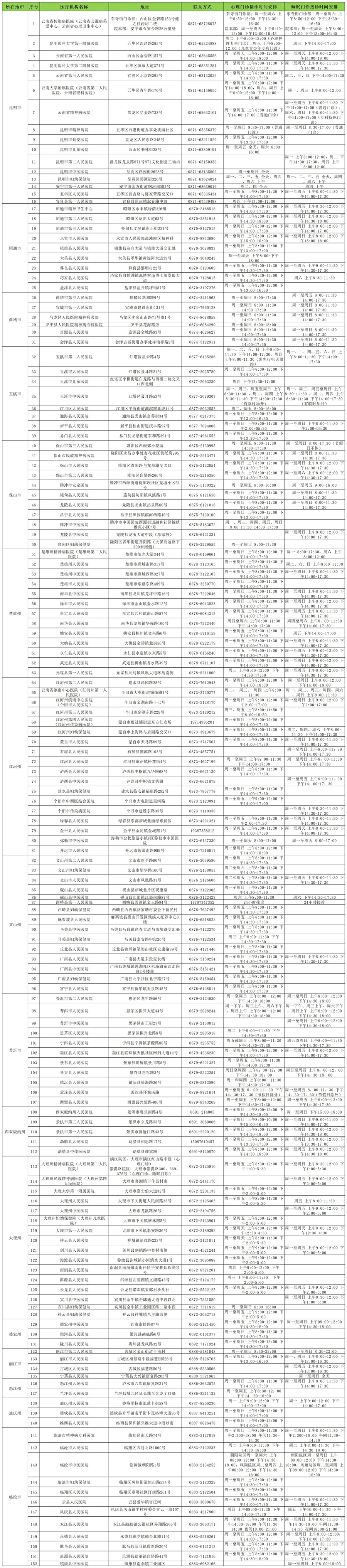 云南省提供心理门诊、睡眠门诊医疗机构名单