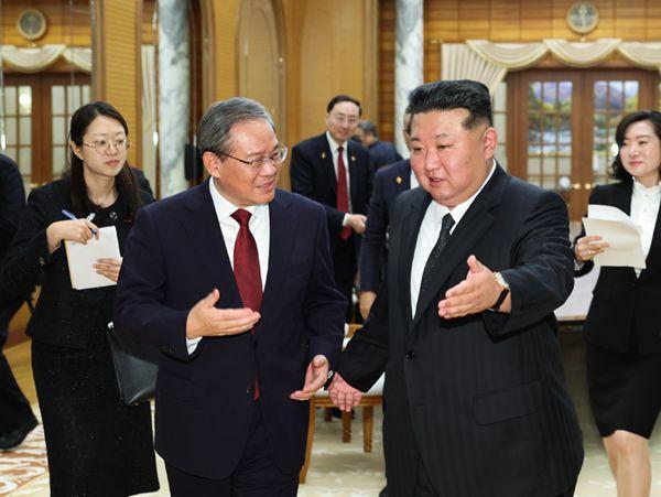 李强首先转达习近平总书记对金正恩总书记的亲切问候和良好祝愿,热烈祝贺朝鲜劳动党建党80周年。李强表示,上个月,金正恩总书记赴北京出席纪念中国人民抗日战争暨世界反法西斯战争胜利80周年活动,习近平总书记同你举行会晤,就进一步深化中朝关系指明了方向,擘画了蓝图。中国党和政府始终从战略高度和长远角度看待中朝关系,维护好、巩固好、发展好中朝传统友好合作关系是我们坚定不移的方针。中方愿同朝方遵循两党两国最高领导人的共同指引,推动双边关系不断取得新发展。