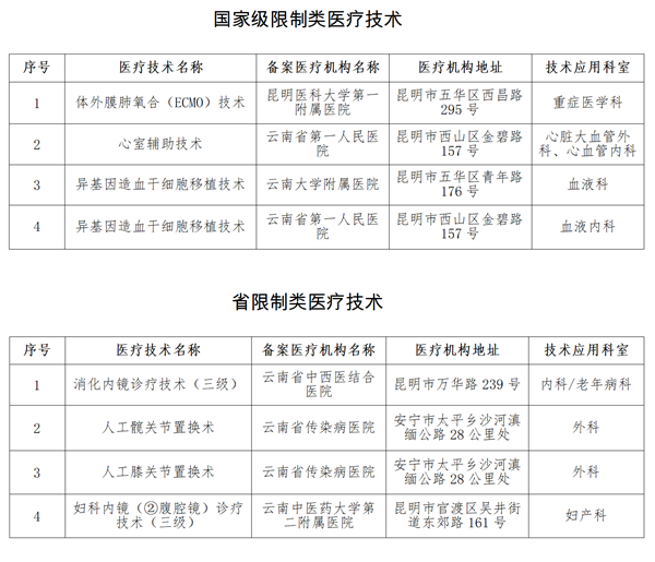 云南省限制类医疗技术临床应用备案公示(2025年第二批)