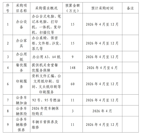 为便于供应商及时了解政府采购信息,根据《财政部关于开展政府采购意向公开工作的通知》(财库〔2020〕10号)等有关规定,现将云南省卫生健康委员会2026年4月至12月政府采购意向公开如下: