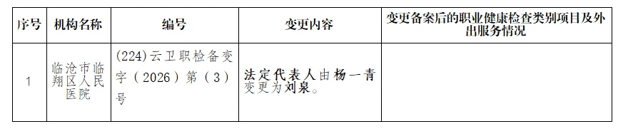 2026年3月云南省职业健康检查机构备案变更名单